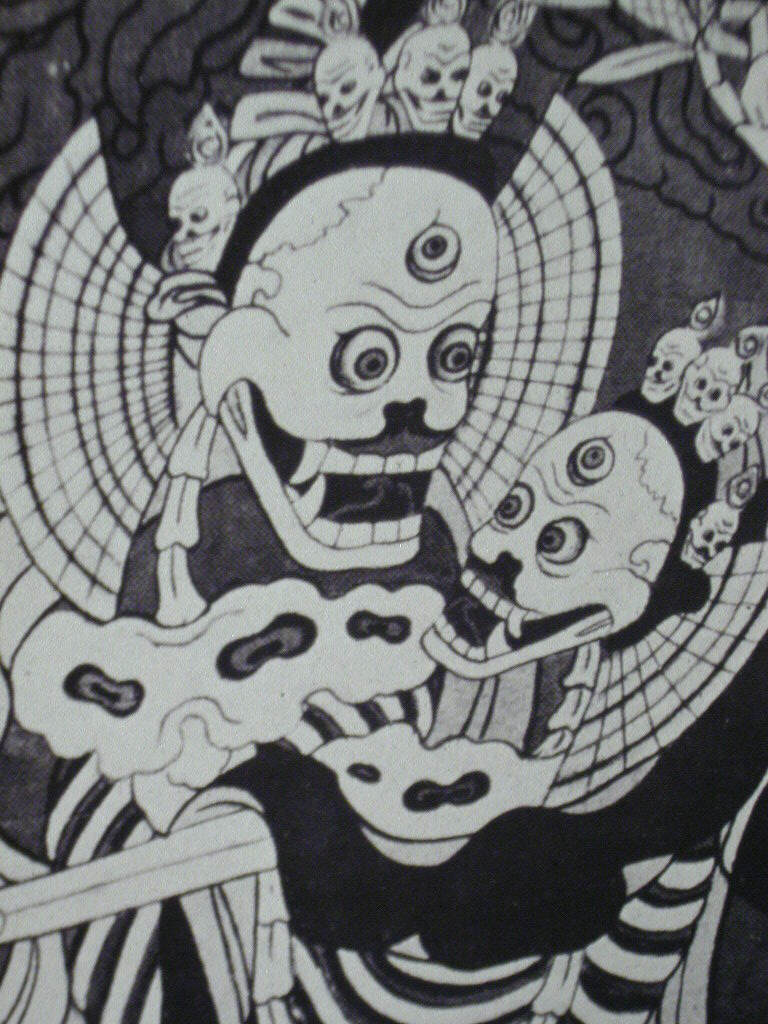 Visiones del bardo: Herukas con cabezas cortadas (banderas tibetanas