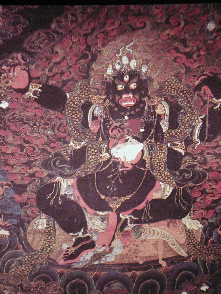 Pintura tibetana s. XVII, Yama sobre el búfalo